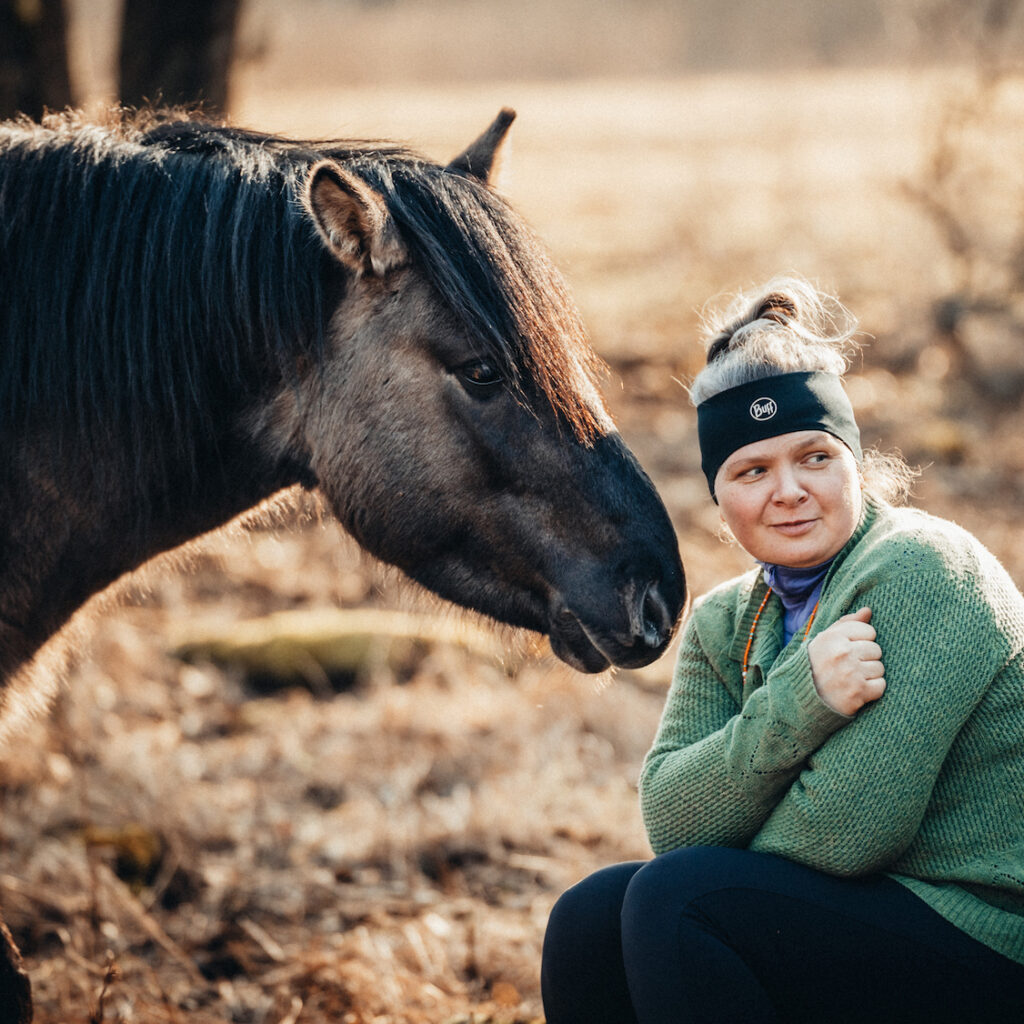 Dlaczego konie? Jakości, które konie utożsamiają jako gatunek – relacyjność ponad terytorialność, proces ponad cel, współpraca ponad rywalizacją, intuicyjność przed racjonalnością – to w dużej mierze potrzeby współczesnego świata i rodzicielstwa. Dwa lata temu szukając dziko żyjących koni odnalazłam nową nadzieję na to, że my ludzie możemy żyć w ko-egzystencji z dzikością tej pięknej planety. Tworzę dom dla dwóch koni urodzonych w Popielniańskim lesie.
